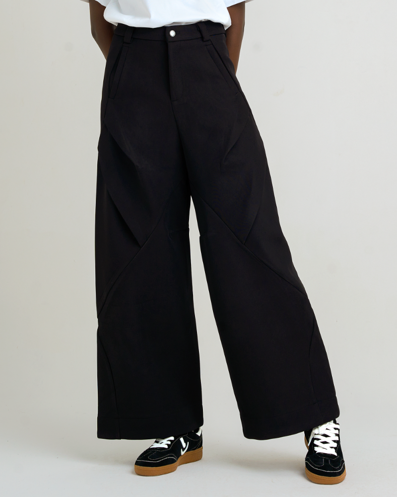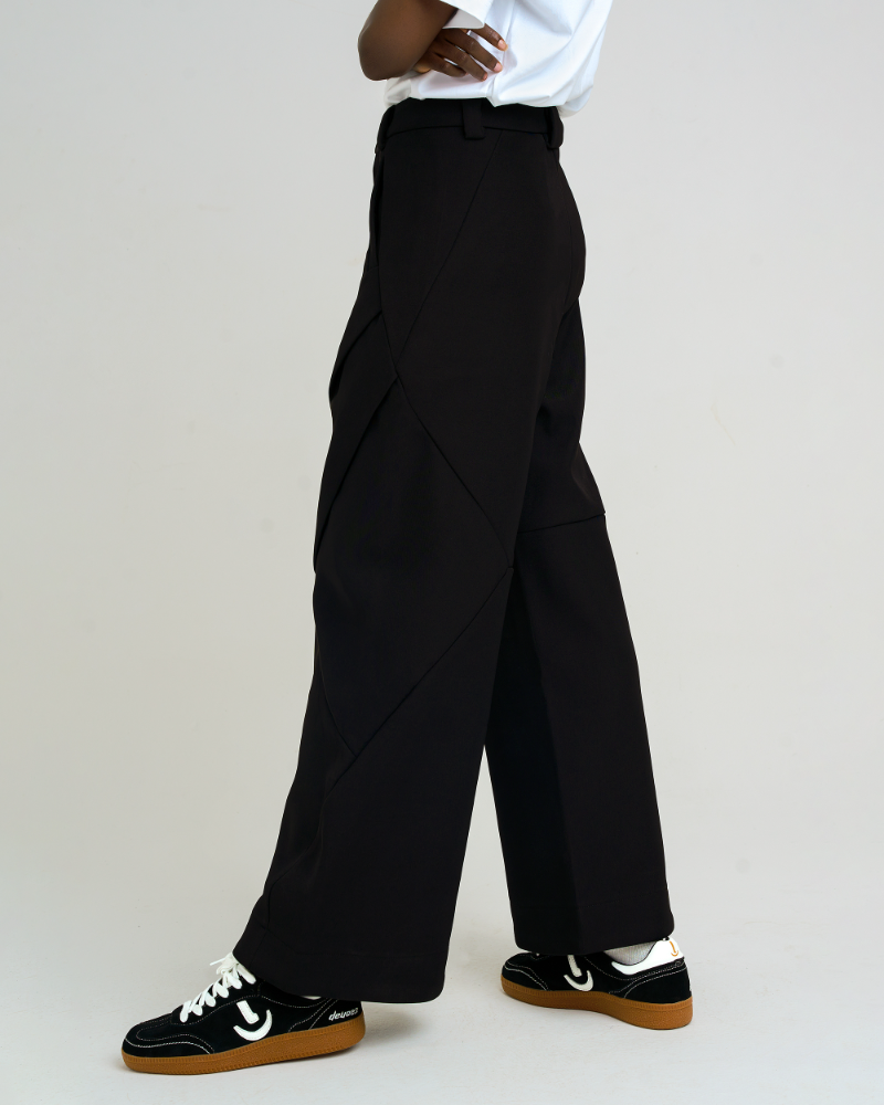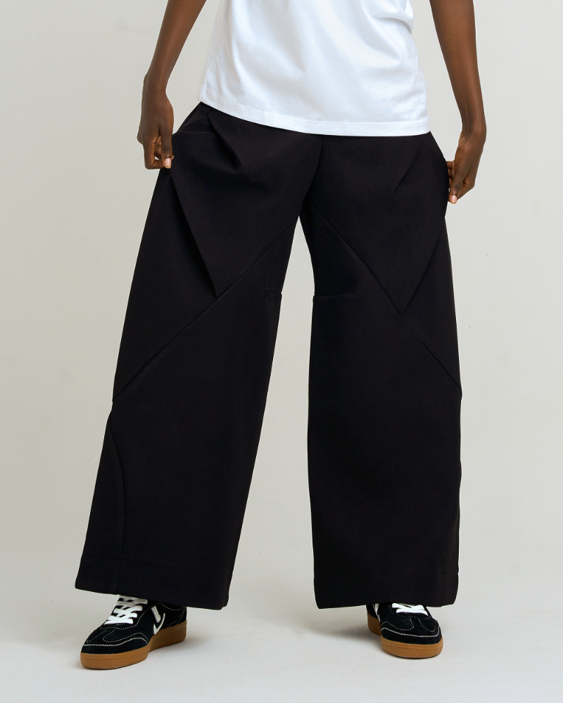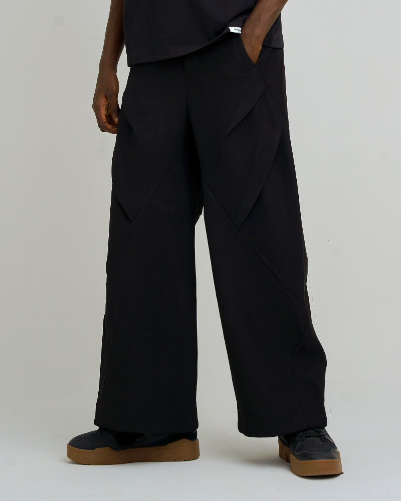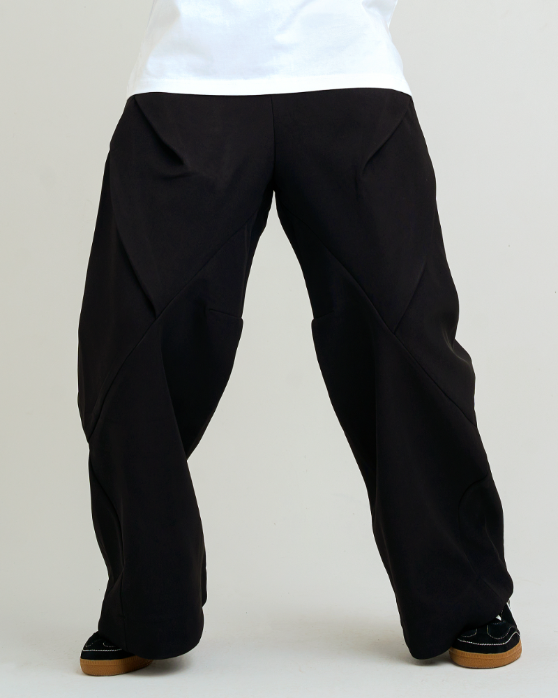 Elevate your silhouette with the Baovicto Pant, a bold and architectural take on black wide-leg structured pants. Featuring exaggerated volume, angled seams, and sculptural paneling, these trousers are designed to make a statement while offering freedom of movement.