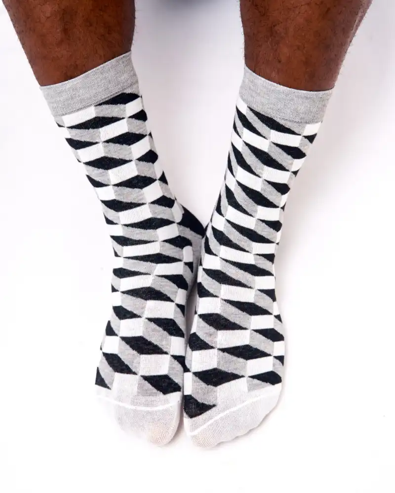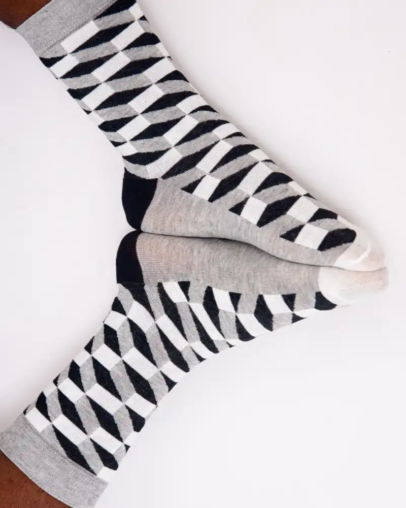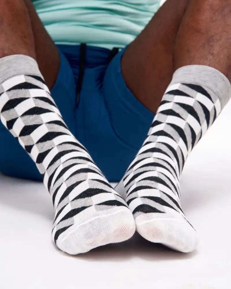Stay wavy with the black plaid socks. This simple design looking pair of socks feels like heaven, with the simplest and most beautiful of colors. Made in combed cotton, these socks feel delicious to wear too. Available in men’s and women’s sizes.