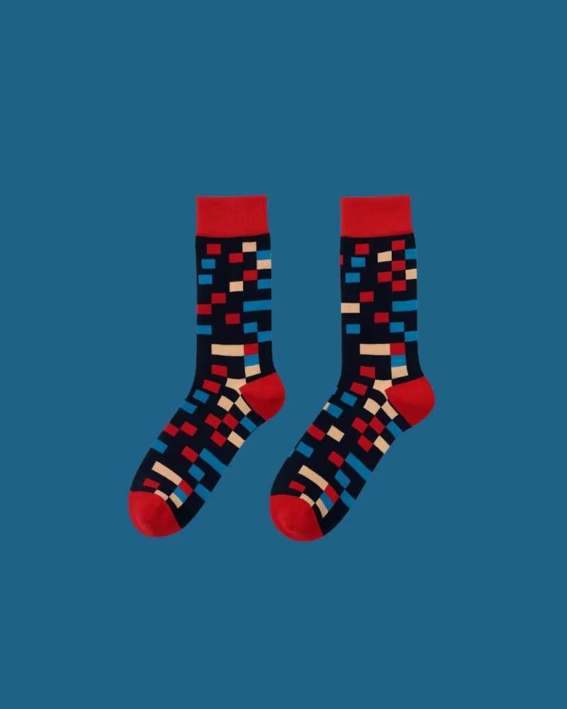 Say hello to The Block Party Set — a vibrant collection of four statement socks designed to turn heads and break style rules. From pixel-inspired prints to bold geometric illusions, each pair brings its own rhythm, color, and attitude. Whether you’re dressing up your kicks or keeping it cozy at home, these socks are your go-to for making everyday outfits feel like a celebration.