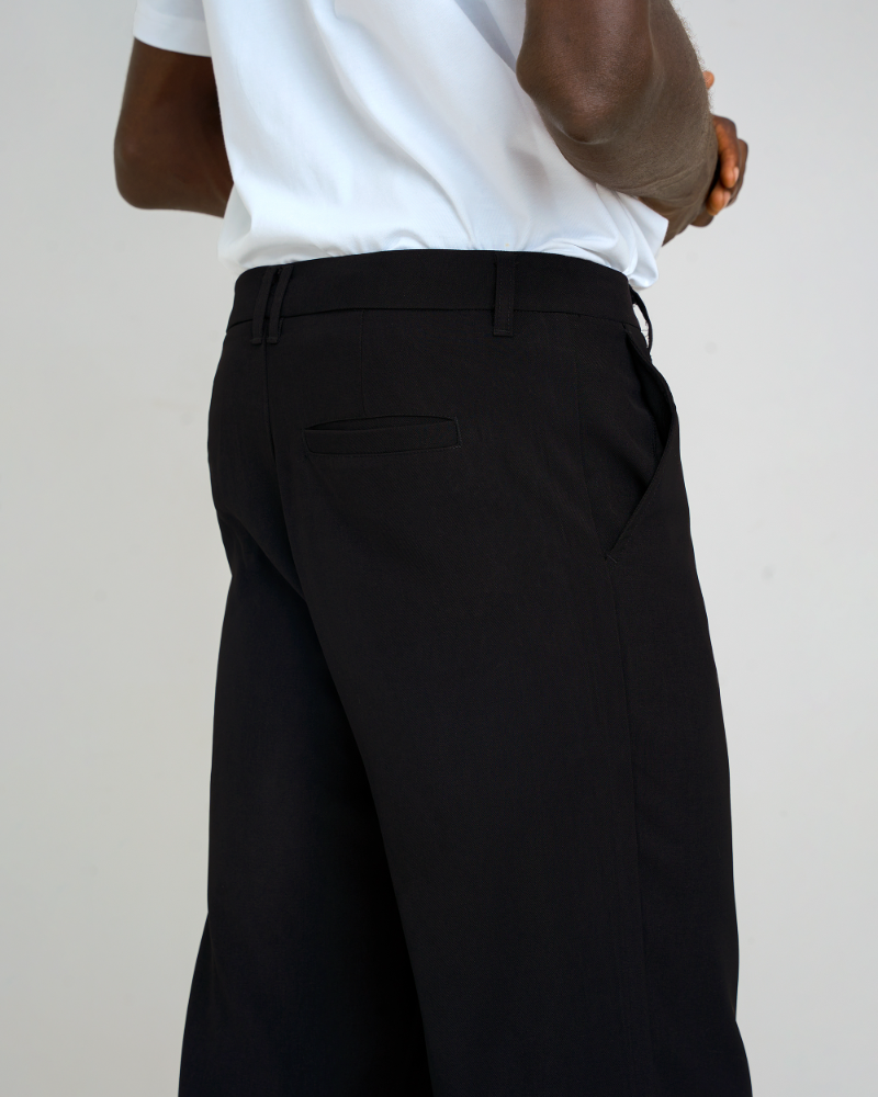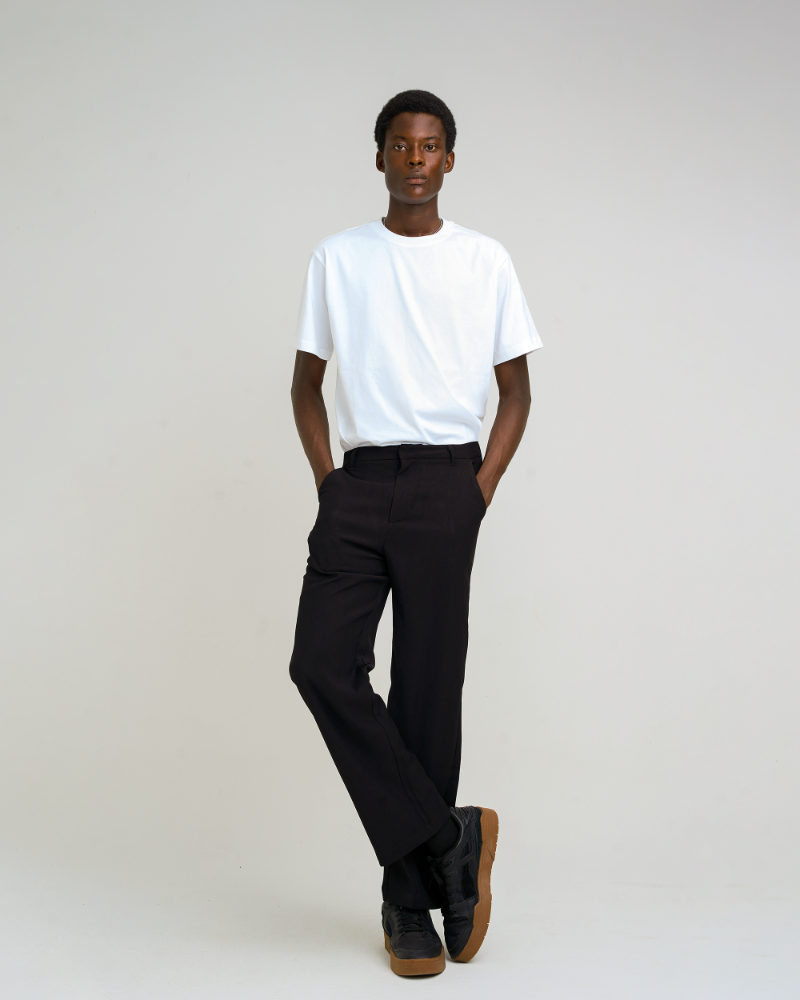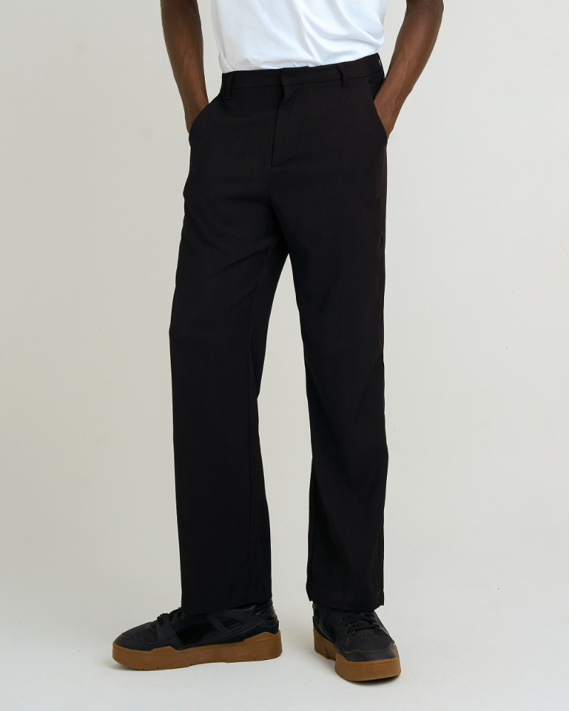 Made from a soft-yet-structured woven fabric with a hint of stretch, these black everyday tailored pants offer all-day ease without sacrificing sharpness. A true wardrobe staple for work, weekends, or everything in between.