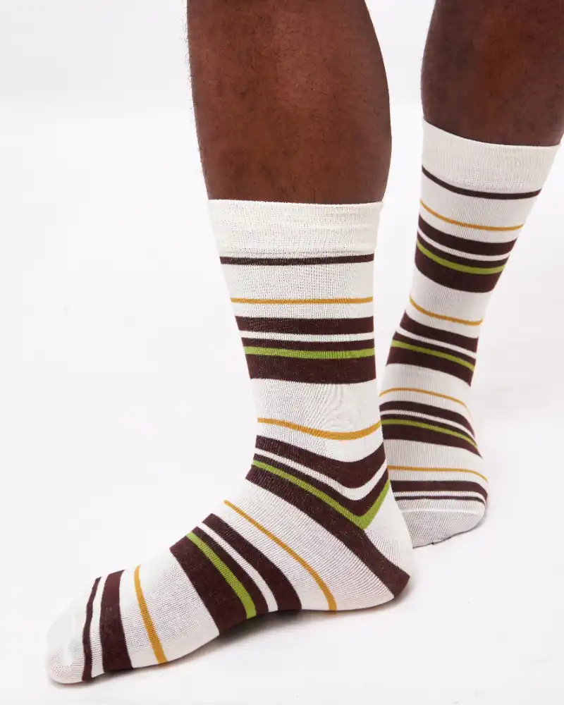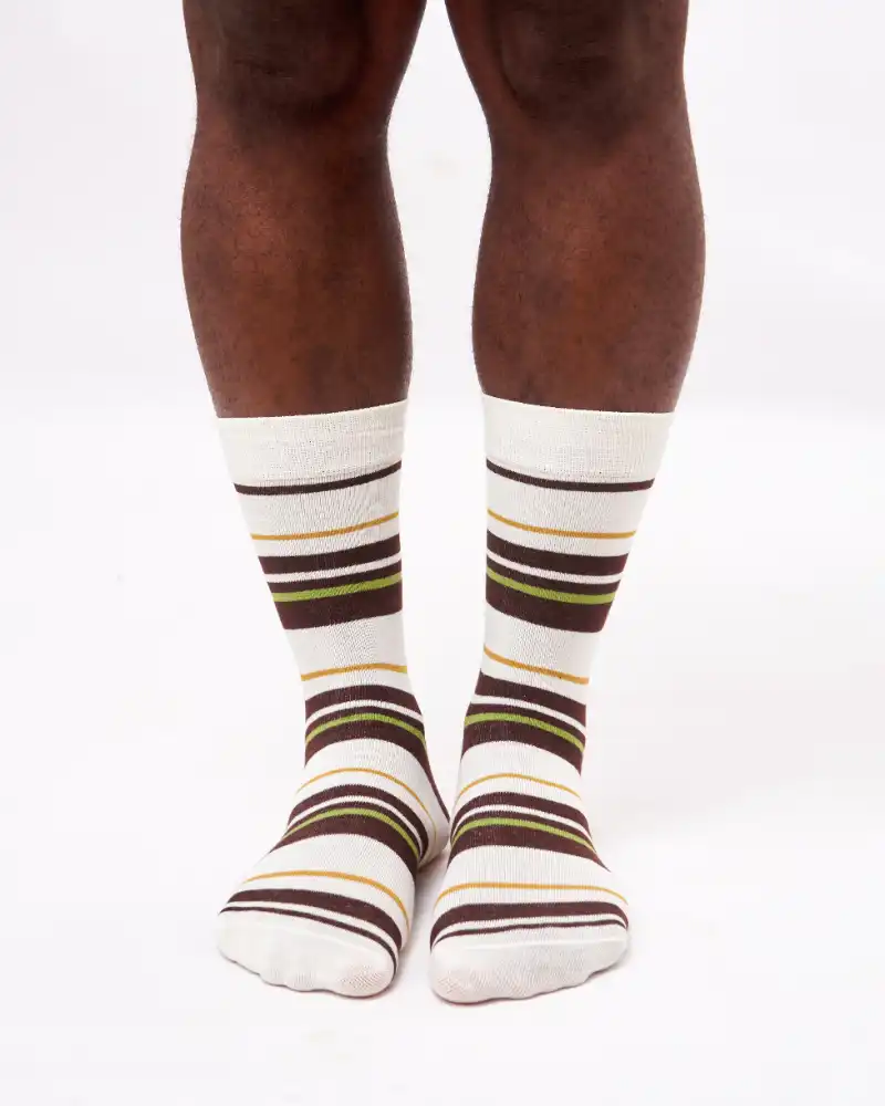 These creem-colored stripe socks with a sprinkle of color make everything better. Don’t settle for less, don’t be boring when you can have a pair of Smiley socks.