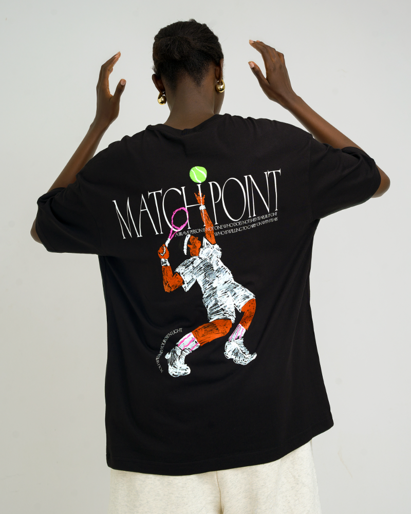 Eye-catching tennis player graphic with “Match Point” text