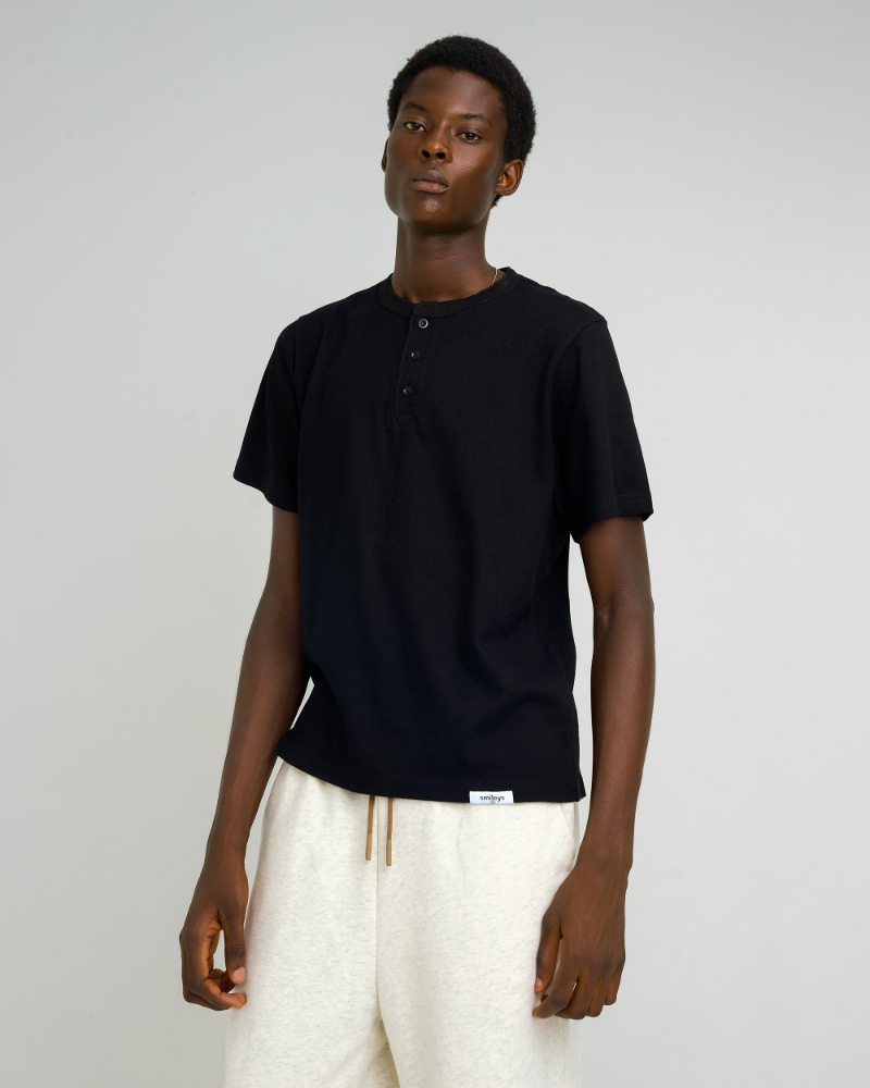 Minimalist Henley Tee – Neutral Button Neck Henley T-Shirt Black