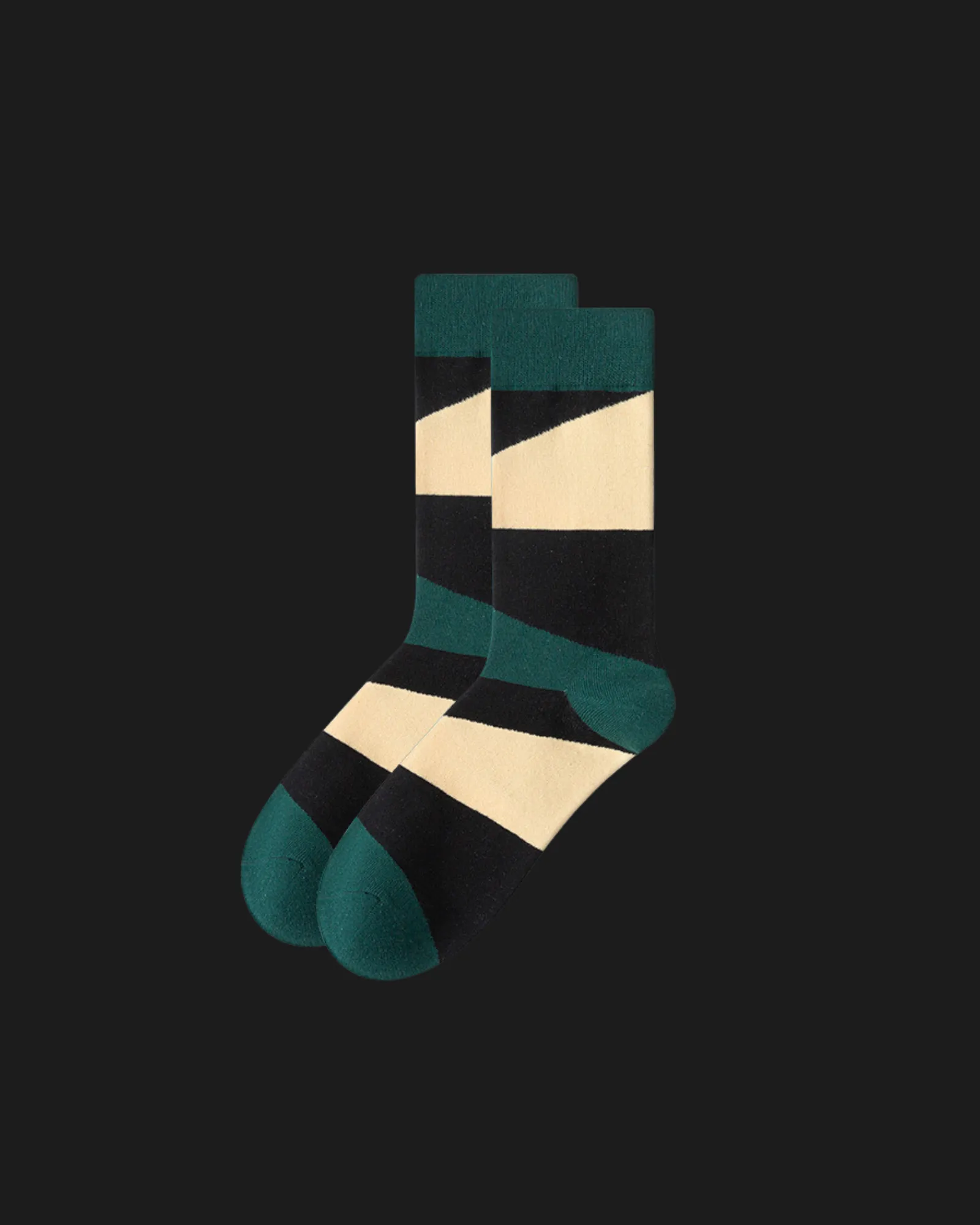 Featuring sharp geometric cuts in black, white, and deep green, Monochrome Edge is the ultimate sock for lovers of modern, minimalist design. A versatile yet eye-catching choice that pairs effortlessly with any wardrobe.