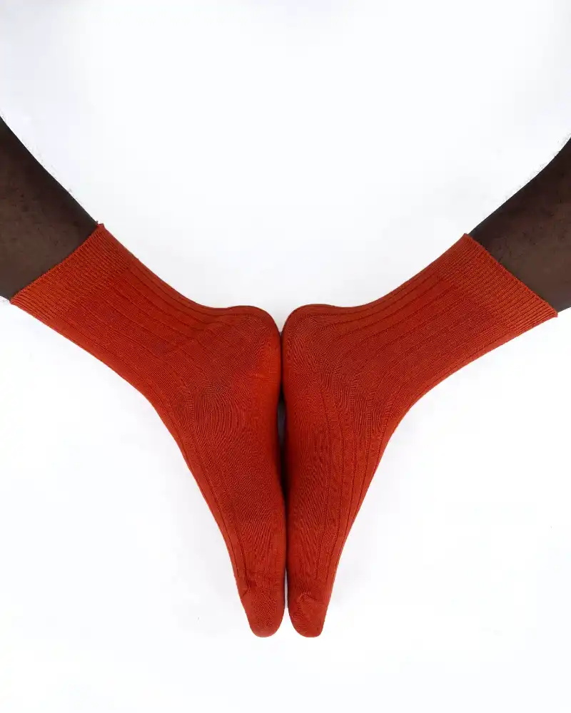 Turn heads with the orange plain socks. They look absolutely delicious. In a ribbed cool yellow color with super cute banana embroidery on it.
