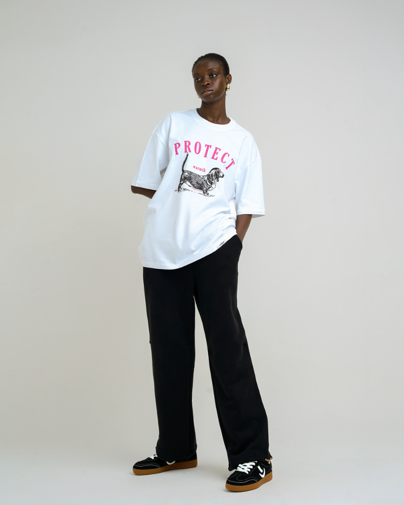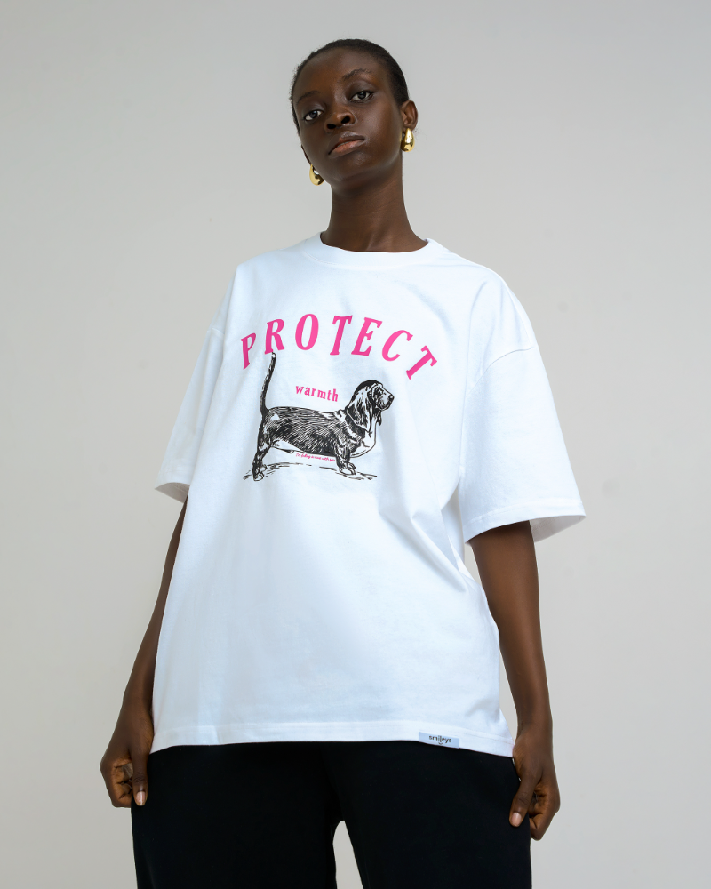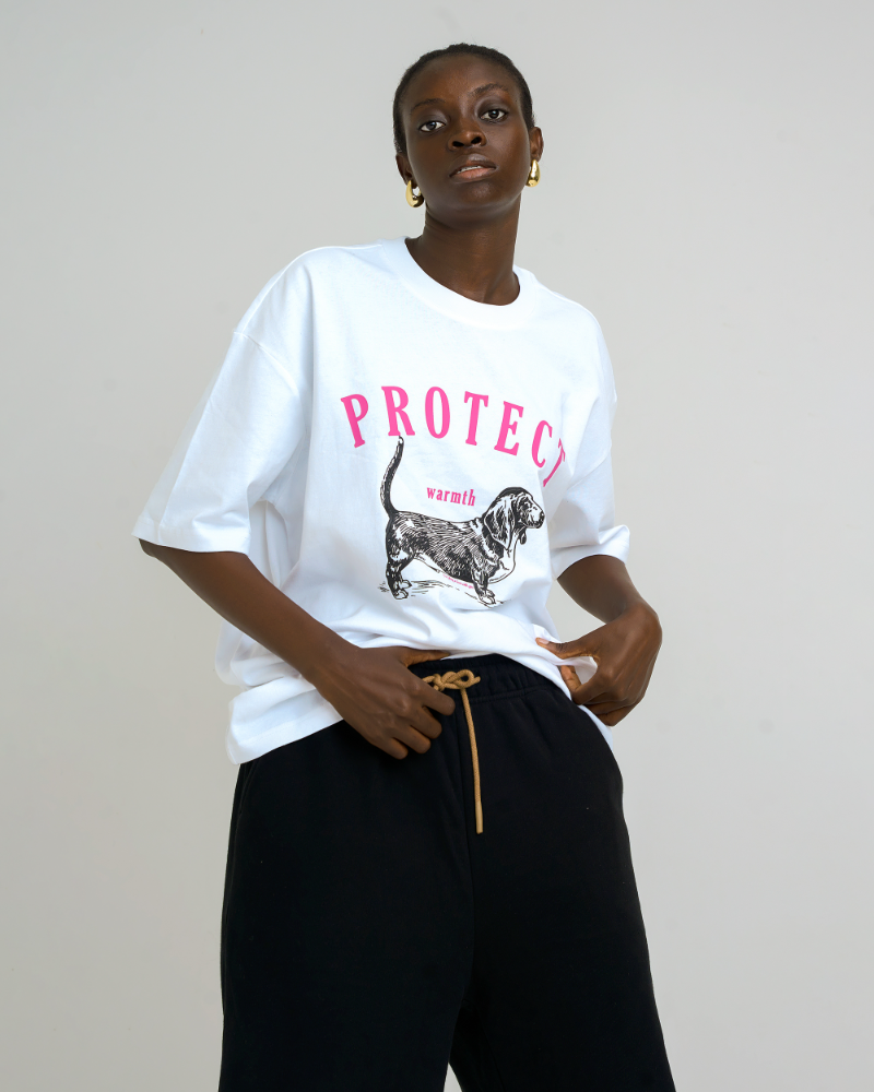 Add a touch of charm to your streetwear with the Protect Pup Tee, a playful graphic dog print t-shirt that blends attitude with cuteness. Featuring bold “PROTECT” text and a vintage-style basset hound illustration beneath, this tee is all about personality and comfort.
