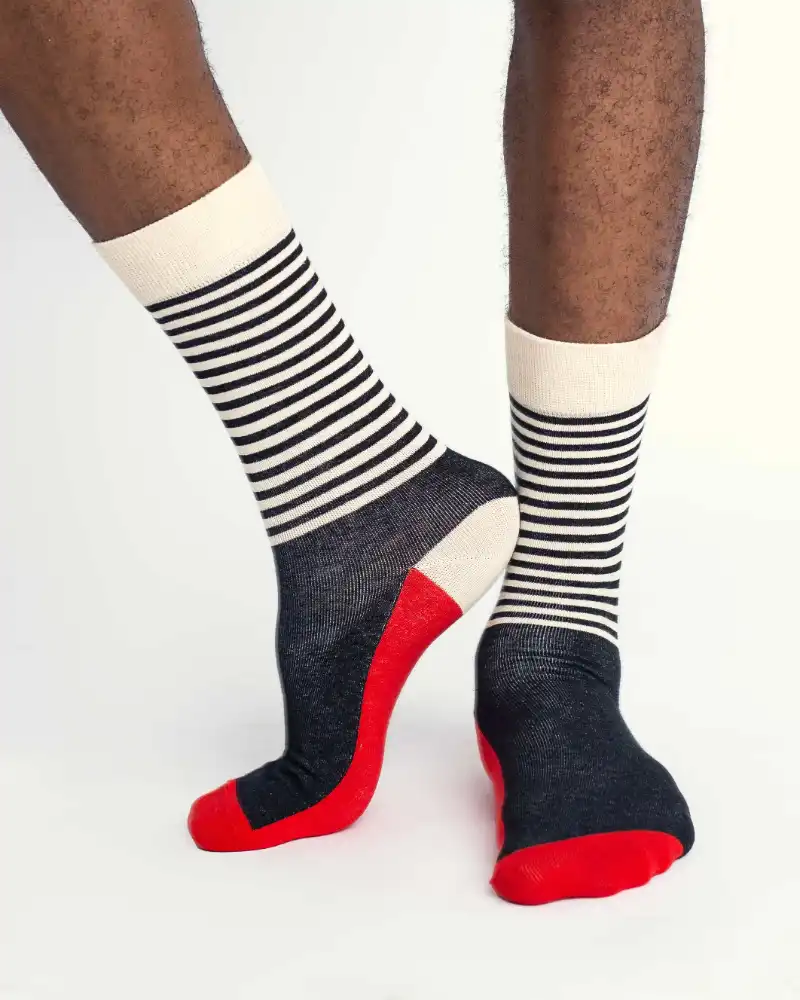 Stay wavy with the Red Bed socks. This simple design looking pair of socks feels like heaven, with the simplest and most beautiful of colors. Made in combed cotton, these socks feel delicious to wear too. Available in men’s and women’s sizes.