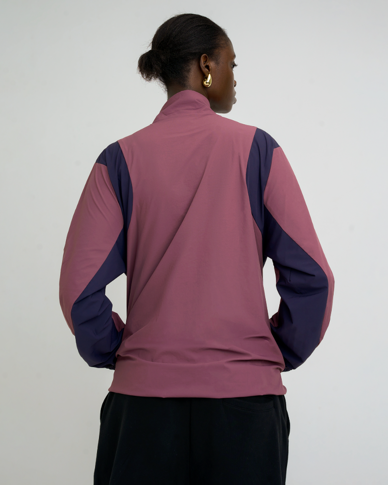 Elevate your streetwear game with the Shadowline Track Jacket, a bold fusion of performance and minimalist design. Crafted from lightweight, breathable fabric, this zip-up jacket features a sleek purple body accented with dark contour panels for a modern, athletic silhouette. Designed with a high collar, full front zip, and dual zip pockets, it balances comfort, utility, and style effortlessly.